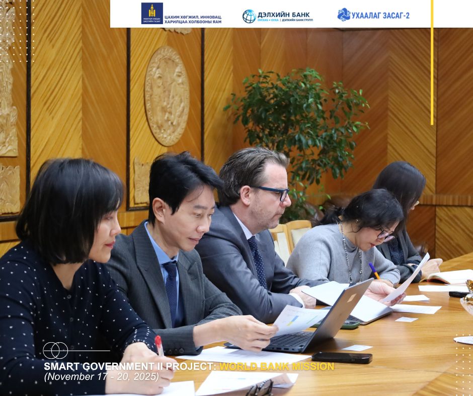 Дэлхийн Банкны Зүүн Ази, Номхон далайн бүсийн Дижитал салбар хариуцсан менежер Жэймс Нойманаар ахлуулсан баг 11-р сарын 17-20-ны өдрүүдэд Монгол Улсад ажиллаж, “Ухаалаг засаг 2” төслийн хэрэгжилт болон цаашдын төлөвлөгөөний талаар холбогдох байгууллагуудтай уулзалт хийлээ. Айлчлалын багийг Цахим хөгжил, инновац, харилцаа холбооны сайд болон төслийн үр шим хүртэгч байгууллагууд хүлээн авч хамтын ажиллагааны өргөн хүрээний хэлэлцүүлэг өрнүүллээ.