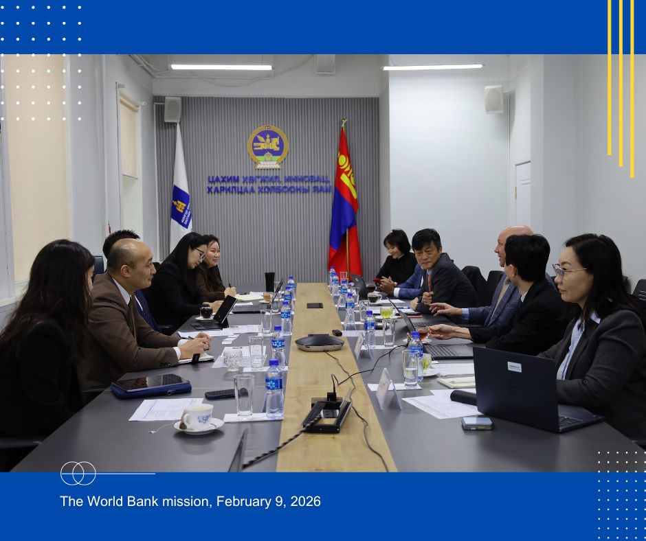 Өнөөдөр (2026 оны 02 дугаар сарын 09-ний өдөр) Цахим хөгжил, инновац, харилцаа холбооны яамны Төрийн нарийн бичгийн даргын албан үүргийг түр орлон гүйцэтгэгч Б.Мягмарнаран, “Ухаалаг засаг 2” төслийн Захирал Д.Цэнгүүнжав, төслийн Зохицуулагч Б.Энхдөлгөөн, холбогдох албан хаагчдын хамт Дэлхийн Банкны Суурин төлөөлөгч ноён Таехюн Ли, БНСУ, БНХАУ, Монгол Улсыг хариуцсан Үйл ажиллагааны дарга Ларс Кристиан Муллер, “Ухаалаг засаг 2” төслийн багийн ахлагч, Цахим хөгжлийн бодлогын ахлах мэргэжилтэн Сиоу Чев Куек болон холбогдох албаны төлөөллийг хүлээн авч уулзлаа.